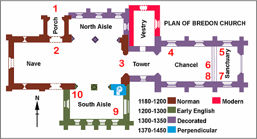 Unlike many monastic foundations, the records of Bredon Monastery have vanished. There is little doubt that the site of the present church stands on historic and holy ground, and could well be the site of the original Saxon house of religion. No traces of the early foundations of this building have been discovered. It is possible that the site of the Old Rectory - a fine house dating from about 1430 - the Manor House, the Old Mansion, or even the Red House in Back Lane could have been the position of the early monastery.
